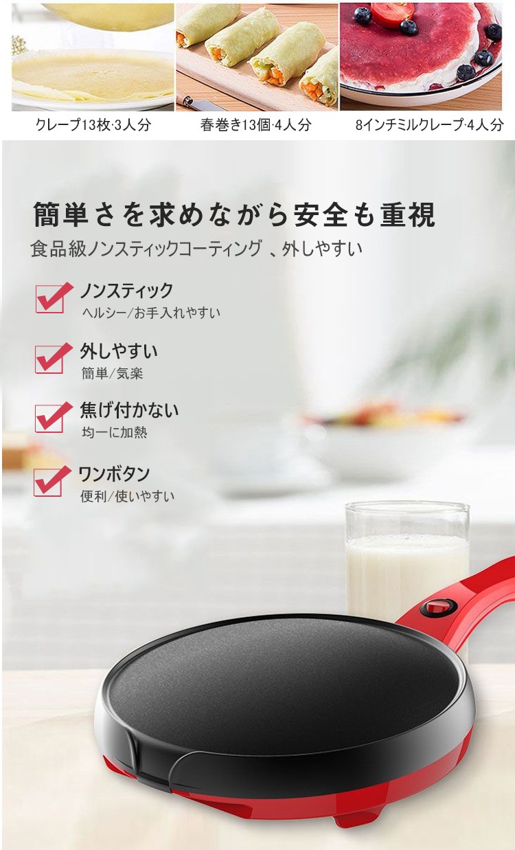 ノンスティックのクレープメーカー